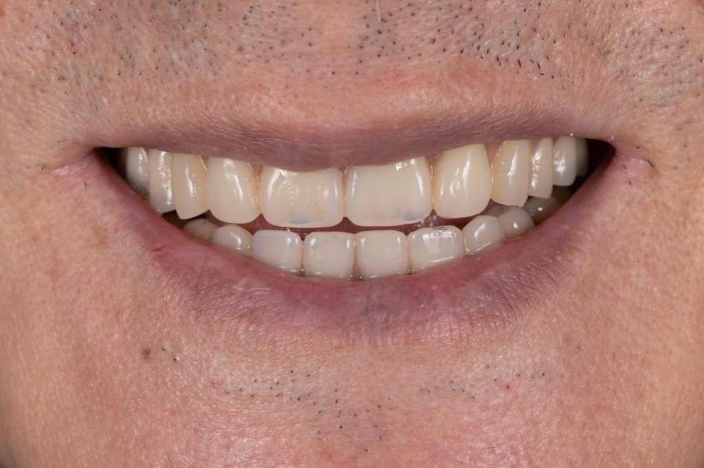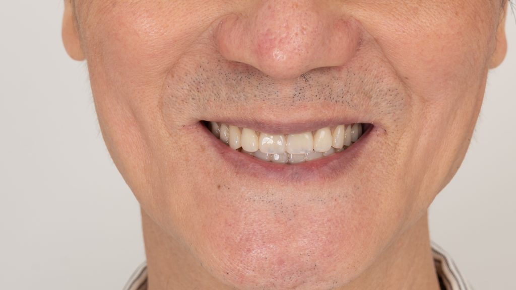 術後當天,H先生就能自在進食,不再受假牙鬆脫影響,笑容與自信全面回歸!