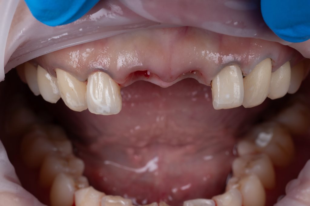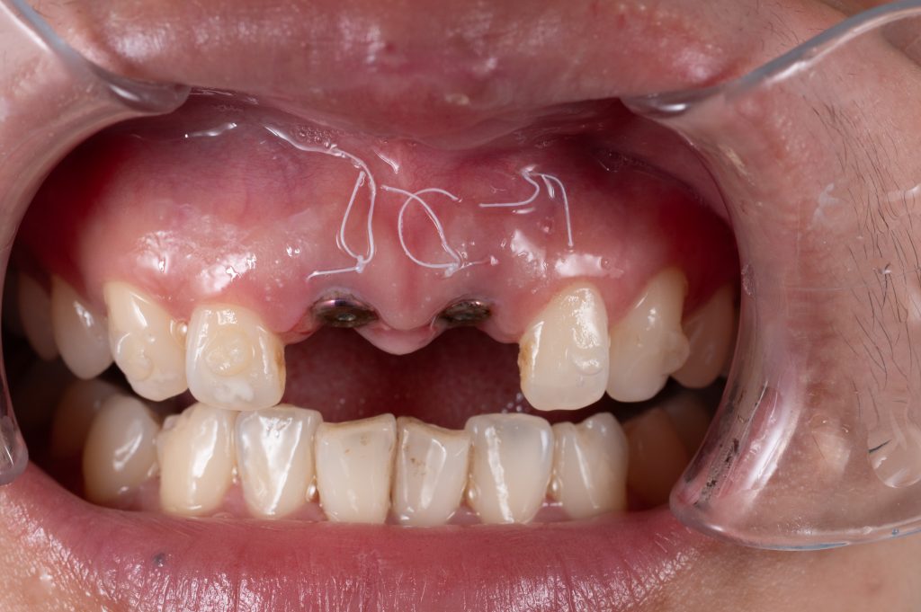 A小姐因車禍導致兩顆門牙斷裂,無法保留。
